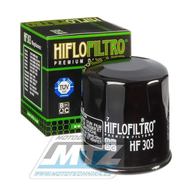 Filter olejový HF303 (HifloFiltro) čierny - Access 450 + Bimota 1000 + Honda 40hp + CB400+CBR1000+VT1100 + Kawasaki KVF400 Prairie+ Jet Ski STX+KLF400 + ZX600 + Z1000 + Polaris 400 Ranger+500 Sportsman + Yamaha YFM660 Grizzly+FX Cruiser+YZF-R1